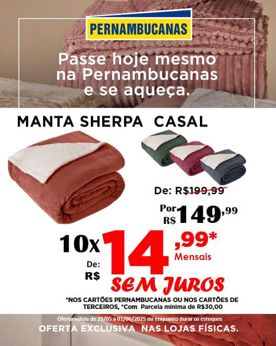 - Manta sherpa casal por 10x de R$ 14,99