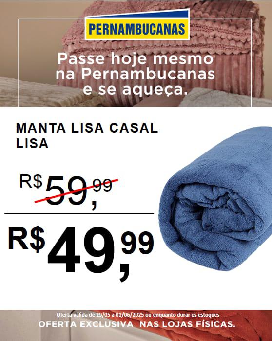 - Manta casal lisa por 10x de R$ 4,99