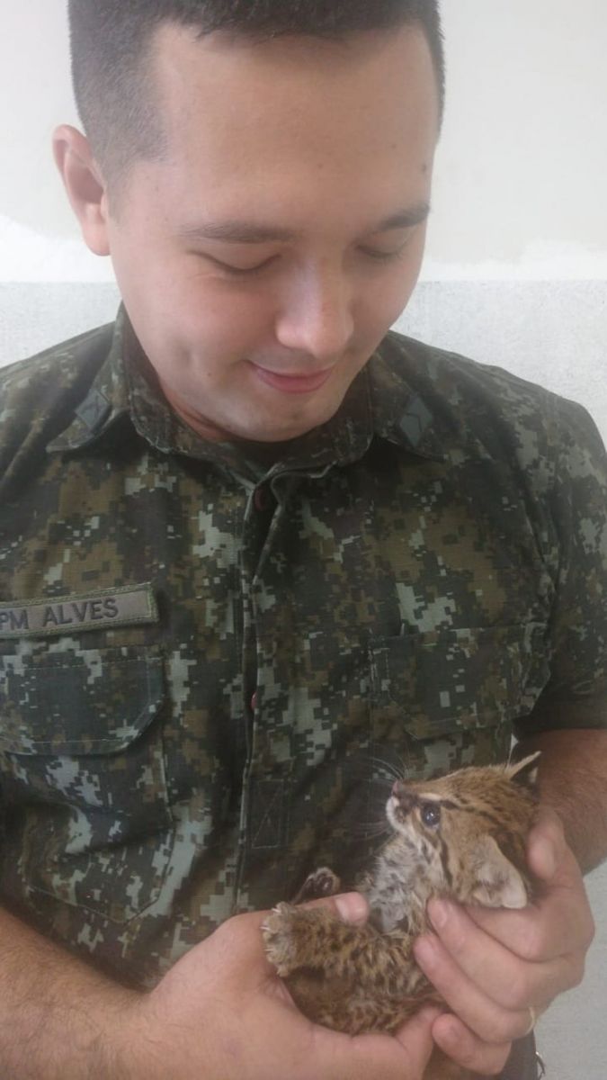A Polícia Ambiental resgatou nesta quarta-feira (23) um filhote de jaguatirica que estava perdido na área rural de Promissão (SP) (190 km de Ourinhos).