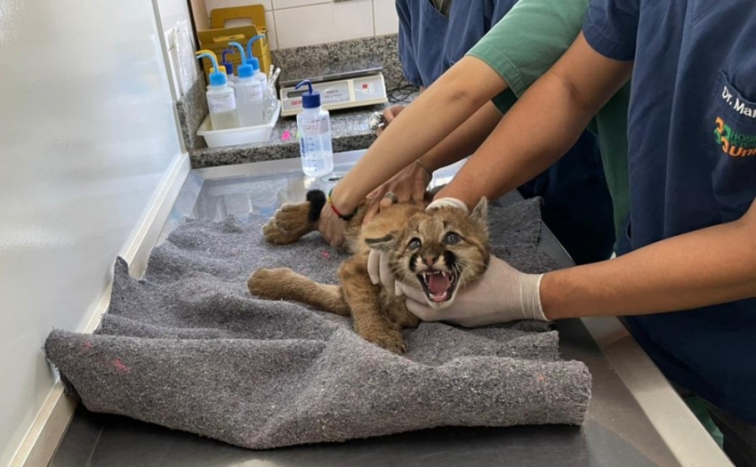 O filhote é uma fêmea e recebeu o nome de Malí no hospital veterinário. A onça parda foi medicada e, ainda de acordo como hospital, sofreu um traumatismo craniano e está em estado grave.