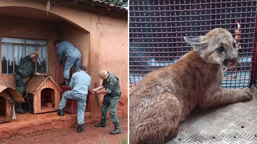 Um filhote de onça-parda foi resgatado na tarde desta sexta-feira (25) em uma casa localizada na zona rural de Assis (SP). O animal foi encontrado escondido atrás de casinhas de cachorro, na varanda da residência.