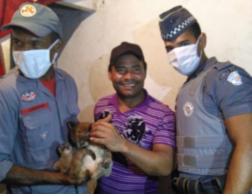 Filhotes de onça parda foram encontrados por produtores rurais em Dois Córregos — Foto: Polícia Militar/Divulgação