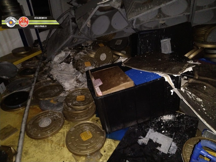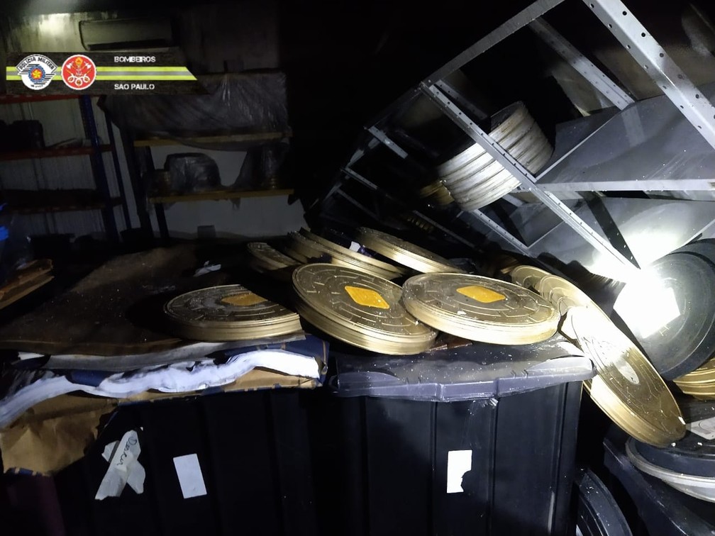 O Corpo de Bombeiros divulgou nesta sexta-feira (30) fotos e vídeos do incêndio que atingiu o galpão da Cinemateca Brasileira, na Vila Leopoldina, Zona Oeste de São Paulo, no início da noite de quinta-feira (29). As imagens mostram rolos de filmes encontrados pelos bombeiros numa das salas onde estava o acervo histórico que fica no primeiro andar.