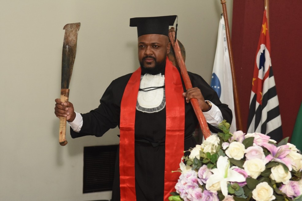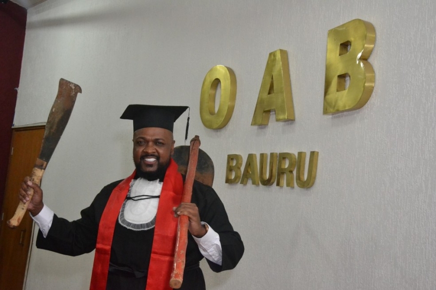 Ao subir ao palco vestido com a clássica beca preta, Agnaldo Araújo chamou atenção no auditório da Subseção de Bauru (SP) da Ordem dos Advogados do Brasil (OAB) ao carregar um facão e uma enxada. Fotógrafos e público reagiram com gritos e aplausos para o formando, morador de Lençóis Paulista.