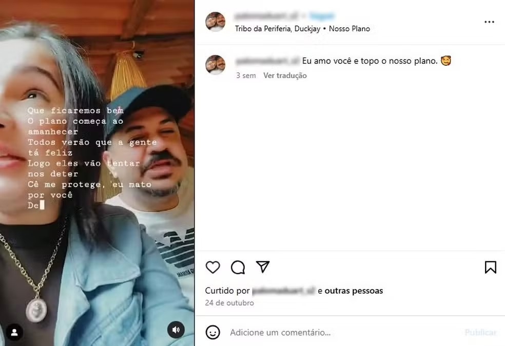 Paloma Duarte Tolentino, de 29 anos, fez a publicação um mês antes do crime que, segundo a polícia, ela planejou com Eduardo Barbosa Oliveira. Espírito Santo — Foto: Reprodução