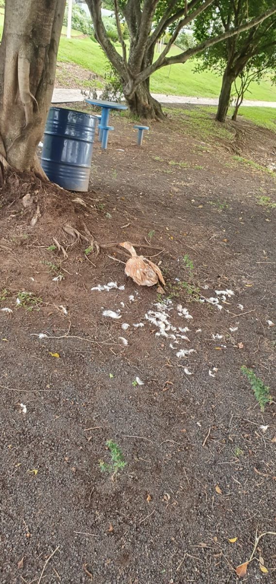 Bianca contou, que o ganso estava com perfurações, o que indica que o animal tenha sido alvo de disparos de arma. Não deu para confirmar se os disparos foram feitos com arma de pressão e “chumbinho”, porque nenhum projétil foi localizado no animal, que passou por autópsia no dia de ontem. A veterinária também descartou a possibilidade de ataque feito por outro animal.