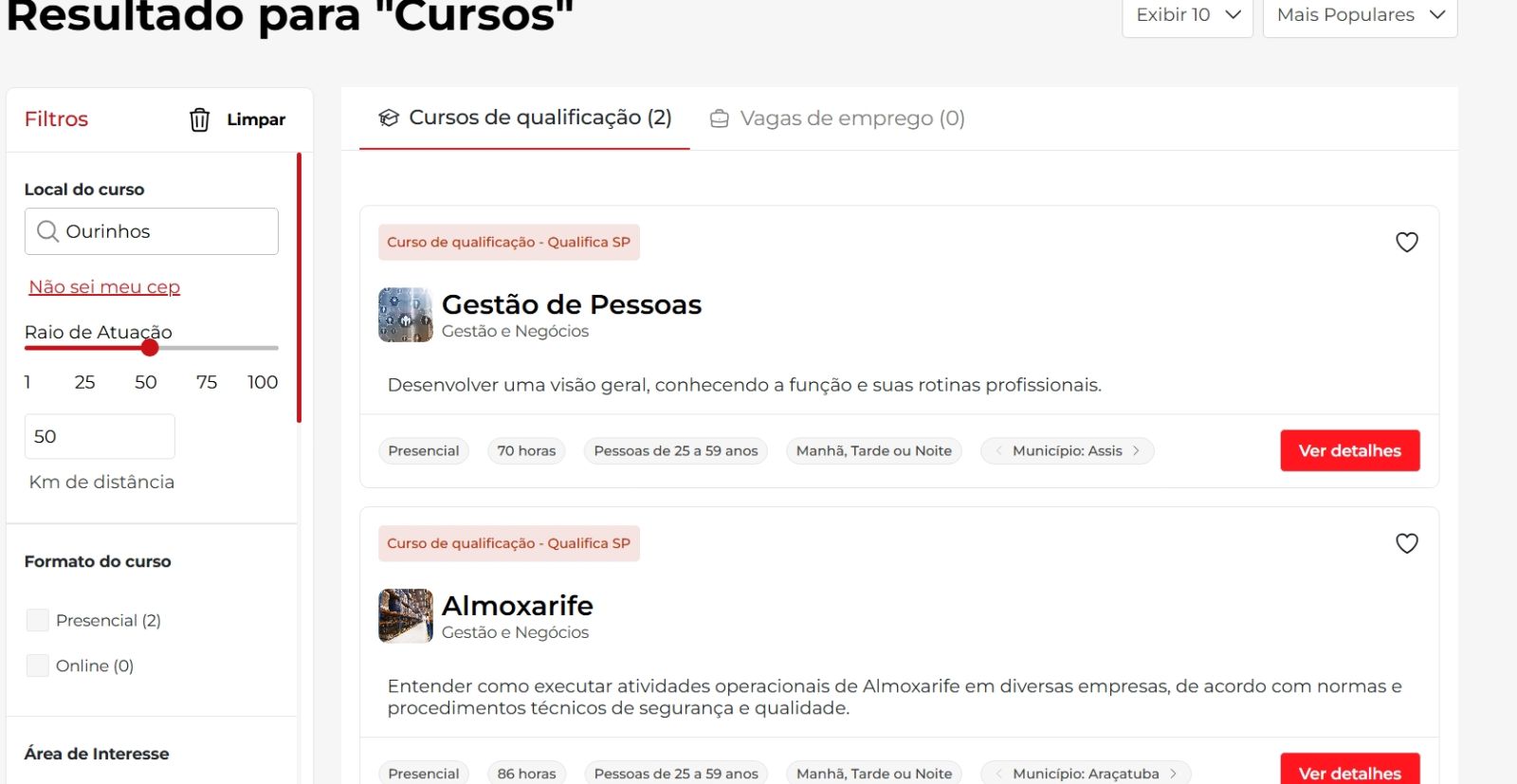 - Novo Emprego: voltado a jovens e adultos entre 25 e 59 anos que desejam se qualificar em uma nova área ou iniciar uma nova carreira;