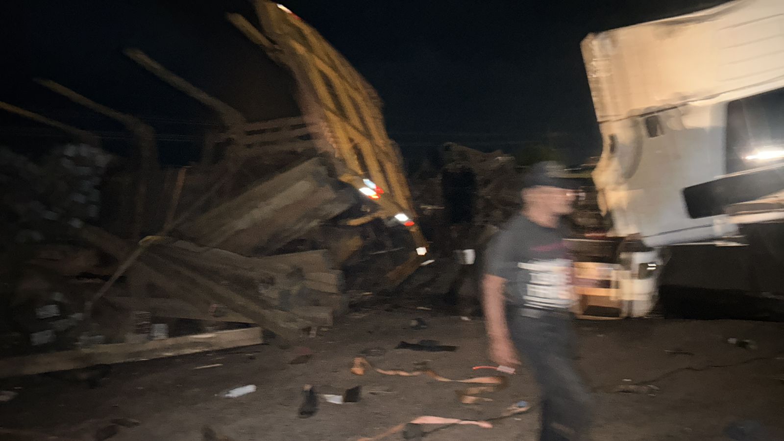 Com o impacto, uma das carretas tombou, espalhando carga de madeira pela pista e provocando a interdição parcial da rodovia. Equipes de resgate foram acionadas e constataram que havia vítimas presas nas ferragens. O atendimento mobilizou ambulâncias e unidades de suporte avançado do SAMU.