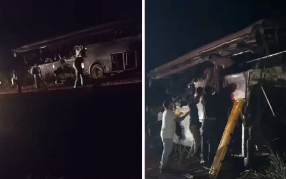 Equipes do Corpo de Bombeiros e da Polícia Militar Rodoviária atuaram no resgate até as 4h desta sexta-feira (21). Imagens do local mostram o ônibus com a lateral destruída.