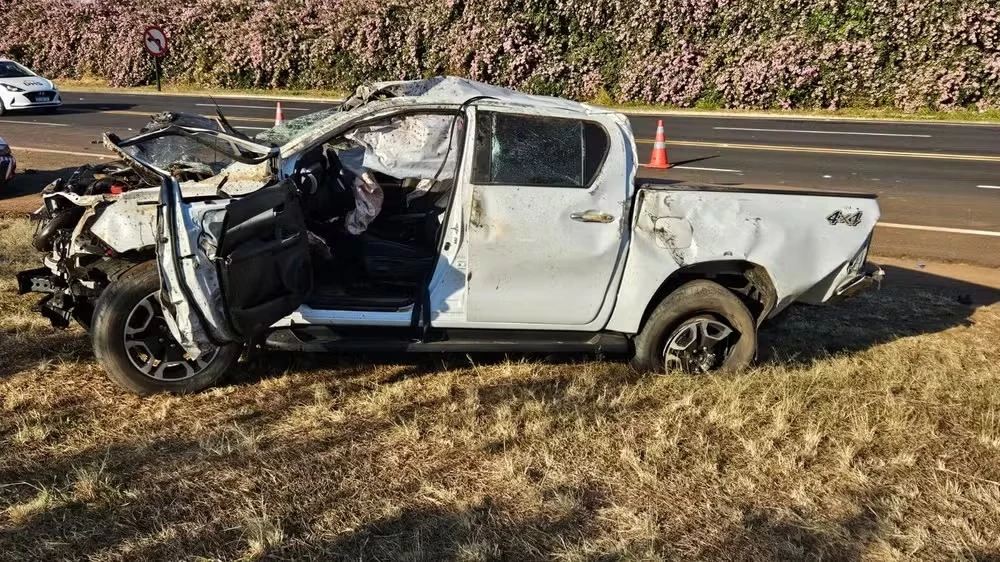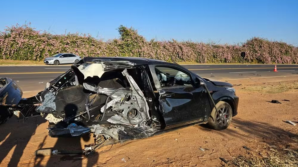 De acordo com a Polícia Rodoviária, uma caminhonete colidiu na traseira de um carro que seguia no mesmo sentido. O impacto destruiu a traseira do carro e a dianteira da caminhonete.