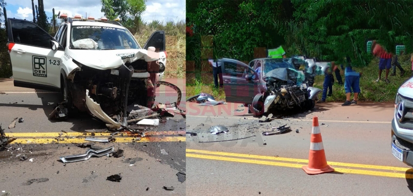 Um motorista ficou preso às ferragens após um grave acidente frontal envolvendo um carro do DER na BR-369, em Santa Mariana, no norte pioneiro do Paraná, segundo o Corpo de Bombeiros.