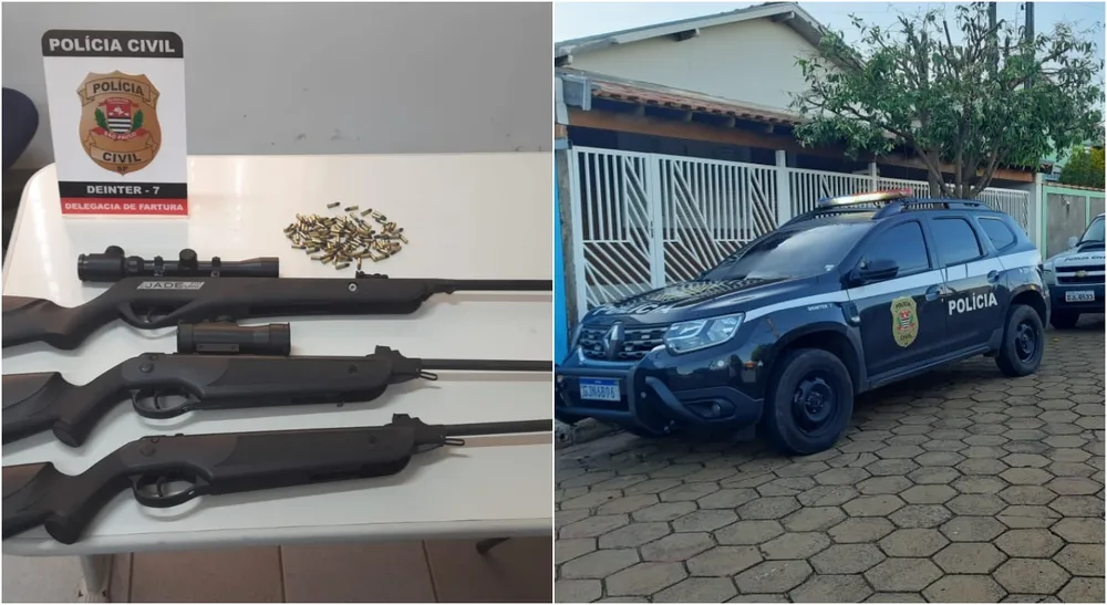 Após serem identificados, a Justiça expediu mandados de prisão temporária contra os investigados. Durante cumprimento de ordem judicial, as equipes apreenderam três espingardas de pressão modificadas para serem mais letais e 99 munições.