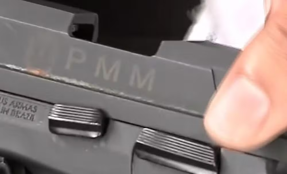 Sigla da prefeitura de Maringá marcada na arma usada no crime. — Foto: Alex Magosso/RPC