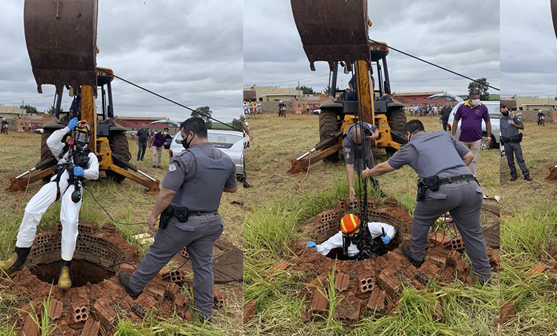O Corpo de Bombeiros de Ourinhos foi até à Rua Mário Moura Tassinari, em terreno baldio, para a retirada do cadáver, que contou com a ajuda de uma retroescavadeira, que serviu como apoio para içar, através de cordas, um bombeiro até o fundo do poço.