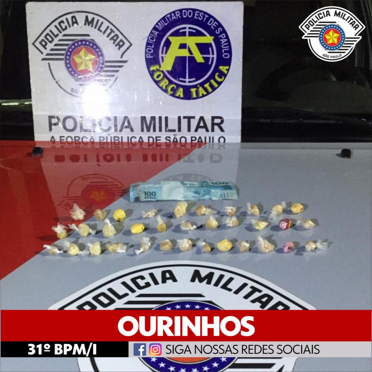 A Força Tática da Polícia Militar prendeu na noite desta quinta-feira, 10, um homem de 42 anos acusado de praticar tráfico de drogas, no Jardim Paris, em Ourinhos. Na sua casa, na Rua Júlio Cesar Costa Gimenez, os policiais apreenderam ao todo 34 pedras de crack, as quais “Palinha” (seu apelido) informou que as vendia por R$50 cada, sendo que, deste valor, repassava R$30 para o seu “fornecedor” e os R$20 restantes ficavam como o seu lucro. As pedras de crack que foram apreendidas seriam bem maiores que pedras comercializadas em outros locais.