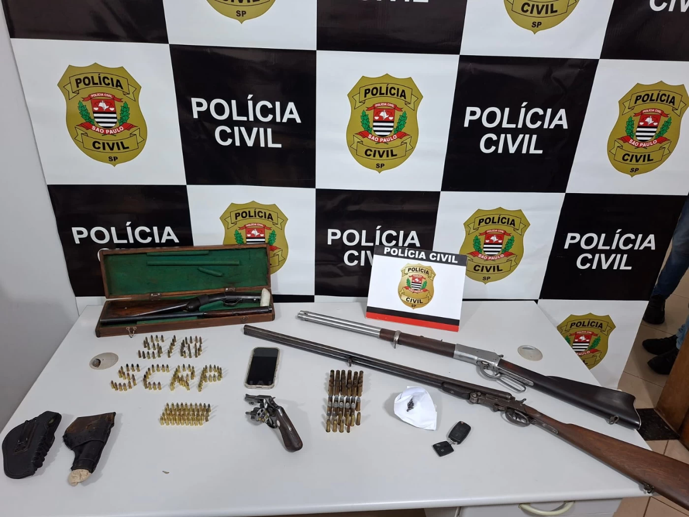 Durante as buscas, os agentes encontraram diversas armas, entre elas espingardas e revólveres, além de várias munições. Duas das armas apreendidas não possuíam registro. O investigado nega ter efetuado os disparos, mas acabou preso em flagrante por posse irregular de arma de fogo. Ele foi liberado após pagamento de fiança.