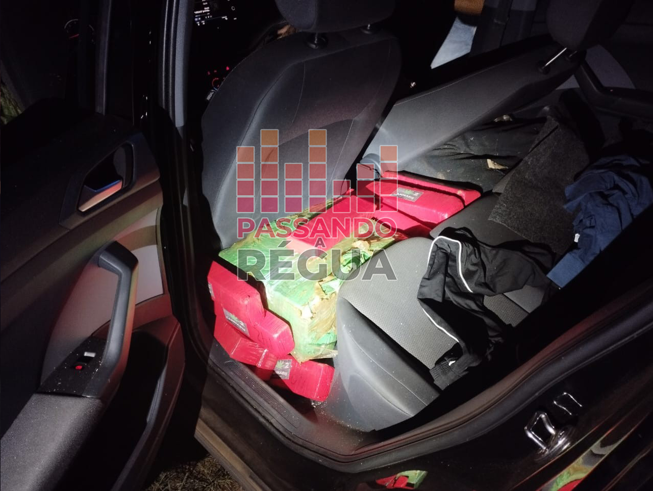 No interior do veículo, os agentes localizaram 162 tabletes de uma substância semelhante à maconha, totalizando aproximadamente 169,8 kg da droga. Ao verificar os elementos identificadores do carro, constatou-se que as placas originais eram SRV-5J77 e que o automóvel possuía um registro de roubo no município de Duque de Caxias (RJ), datado de 8 de dezembro de 2024 (BO 0026968).
