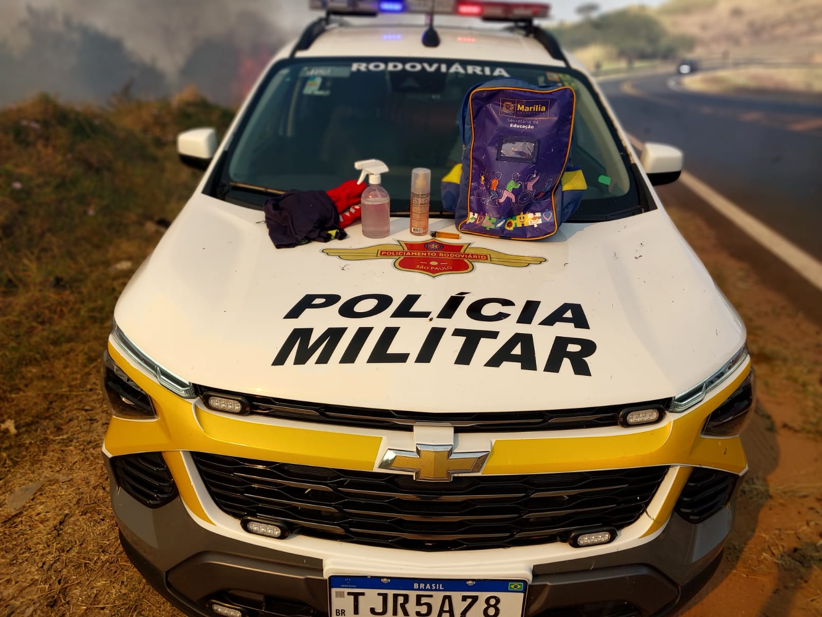 De acordo com a Polícia Militar Rodoviária, a equipe que fazia patrulhamento pela via avistou o suspeito saindo da vegetação, de onde começava um foco de incêndio. Na abordagem, os policiais encontraram em sua mochila duas garrafas com líquido inflamável, aparentemente álcool, além de um isqueiro.