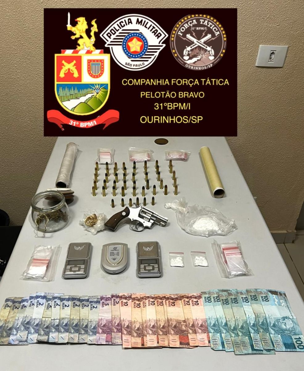 Um homem de 39 anos foi preso em flagrante, na noite deste sábado, 25, acusado de tráfico de drogas e posse irregular de arma de fogo de uso permitido (artigo 12 do Estatuto do Desarmamento), durante ação da Força Tática da Polícia Militar na Vila Odilon, em Ourinhos.
