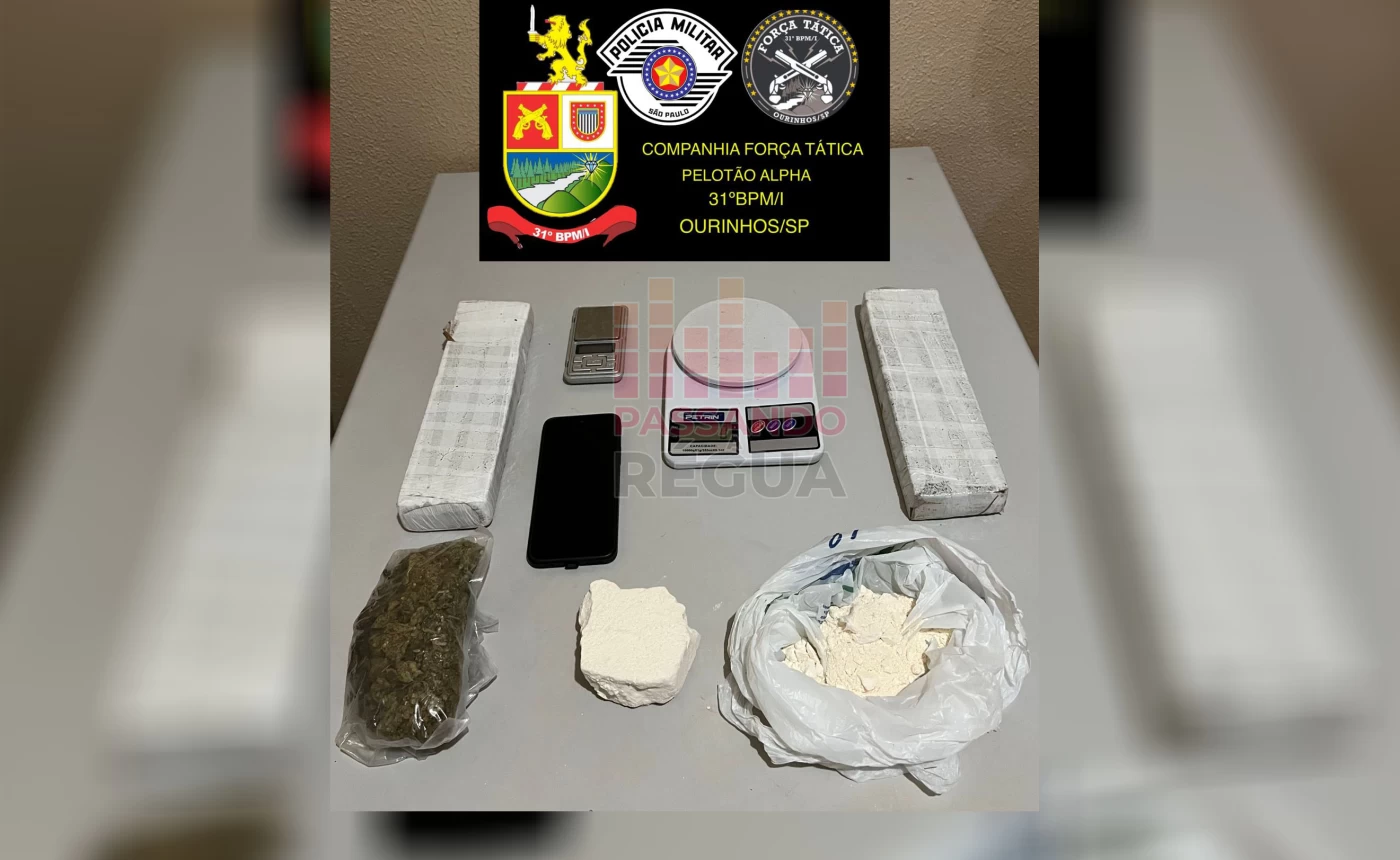 Diante dos fatos, foi dada voz de prisão ao suspeito, com a leitura de seus direitos constitucionais. Ele foi algemado devido ao fundado receio de fuga e encaminhado ao Plantão Policial de Ourinhos para as providências de polícia judiciária. As drogas apreendidas foram encaminhadas ao Instituto de Criminalística, confirmando tratar-se de Cannabis Sativa L. (maconha), com massa líquida de 1.618,88 gramas, e cocaína, totalizando 326,51 gramas.