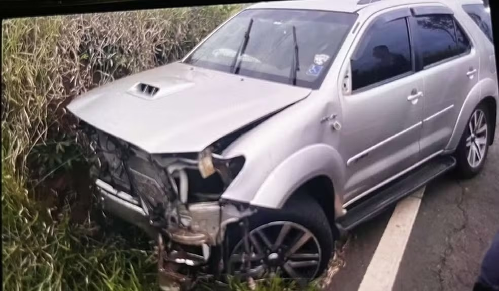 Caminhonete que foi roubado em Avaré (SP) foi localizada batida próximo a Itatinga (SP) — Foto: Reprodução/A Voz do Vale