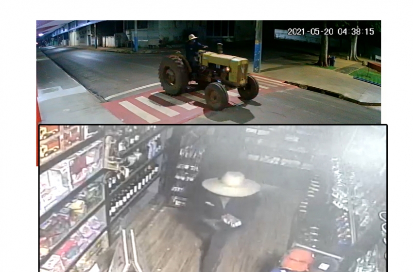 A ação do homem com chapéu de palha, que usa um trator, foi registrada por câmeras do circuito de segurança do local e da rua.
