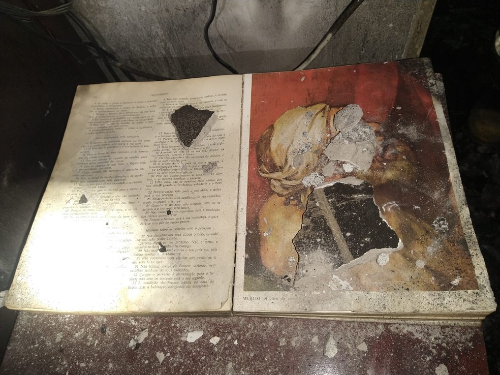 Bíblia foi encontrada praticamente intacta no local do incêndio (Foto: Corpo de Bombeiros /Divulgação)
