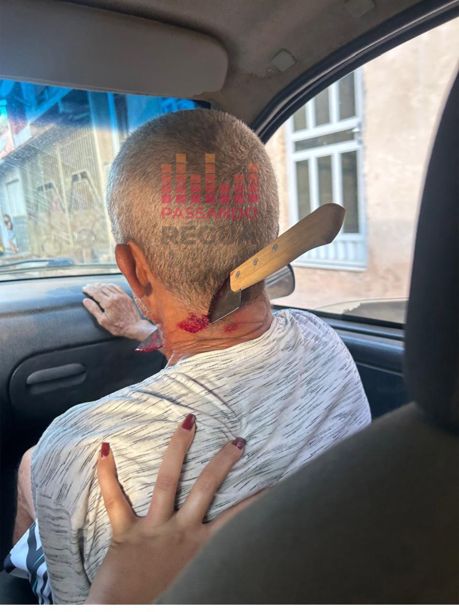 Um idoso de 62 anos foi socorrido após ser atingido com uma facada no pescoço no início desta semana, em Imbé de Minas (MG). A faca ficou cravada na região do ferimento, e a cena impressionante foi registrada e compartilhada por moradores. Apesar da gravidade, a vítima foi encaminhada ao hospital e está fora de perigo. Veja o vídeo abaixo.