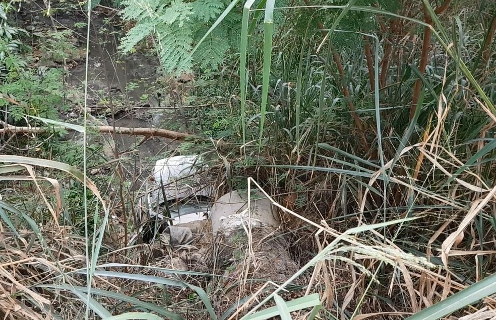 Carro do idoso caiu em um córrego em Marília — Foto: Alcyr Netto/ TV TEM