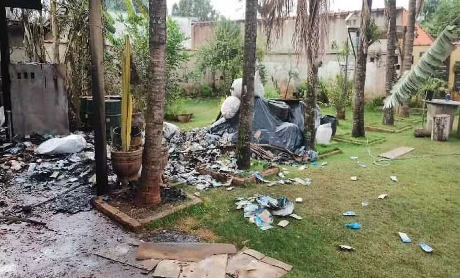 No local, no Jardim Recreio Lago dos Paturis, foram localizados vários sacos de parafina e cinco botijões de cozinha dentro da piscina da chácara.