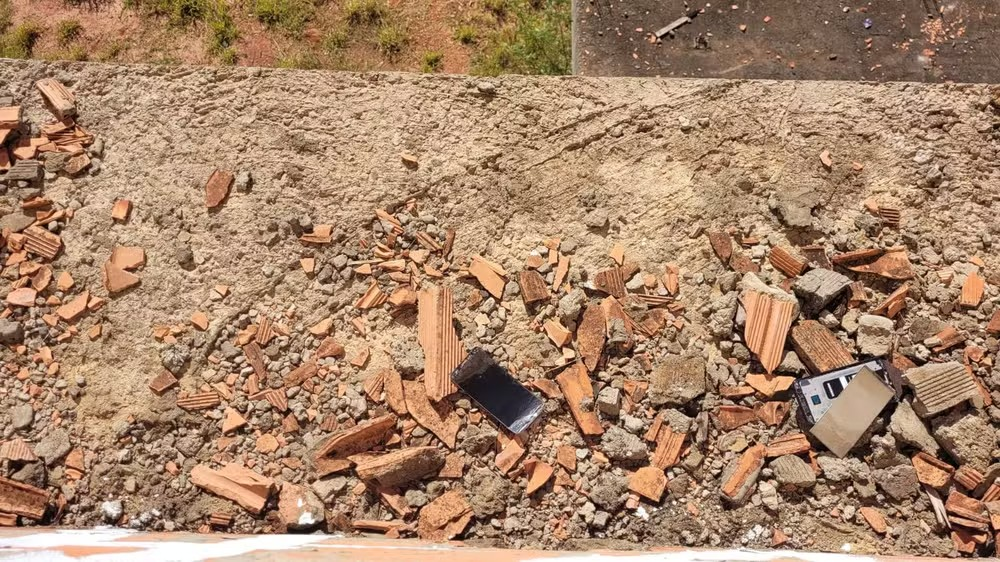 Celular foi encontrado durante a perícia complementar no prédio em Bauru — Foto: Polícia Civil/ Divulgação