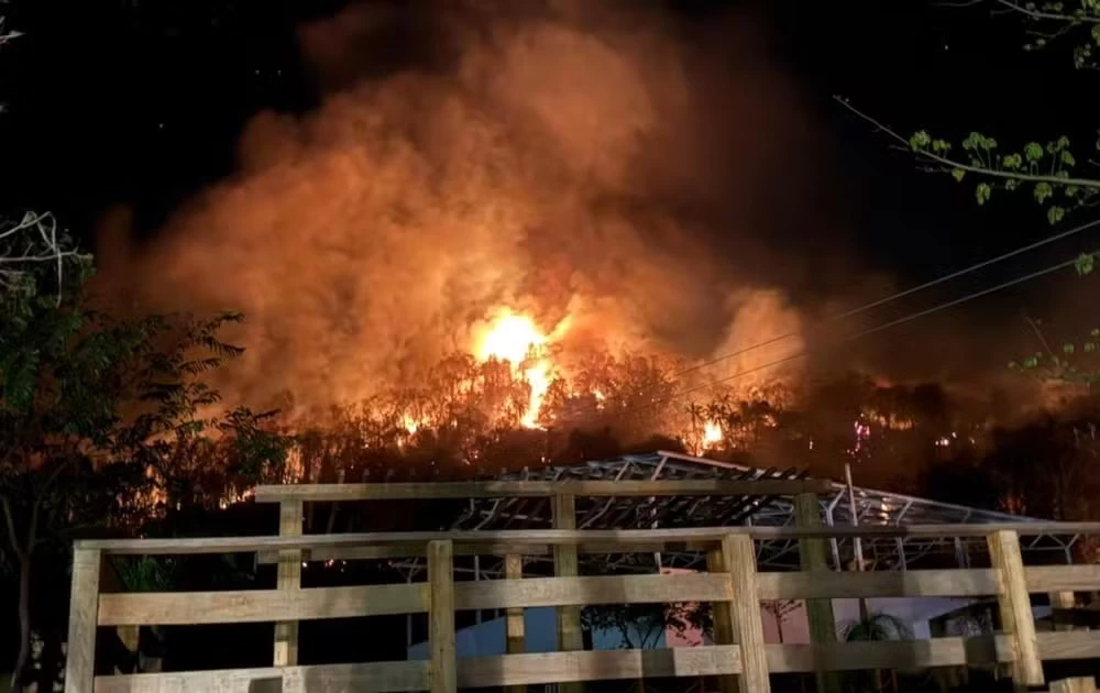 Equipes da Defesa Civil e do Corpo de Bombeiros foram mobilizadas, mas até a última atualização o fogo ainda não havia sido controlado.