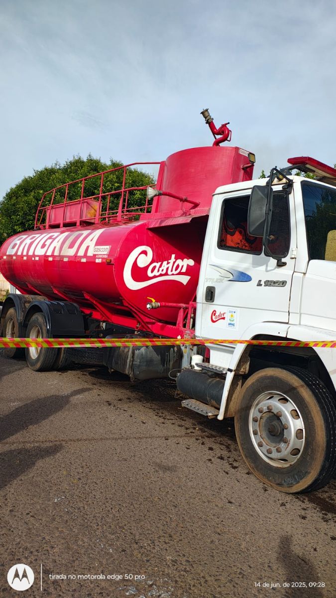 Caminhões pipa da Prefeitura de Ourinhos e da Briga da Castor apoiaram o Corpo de Bombeiros