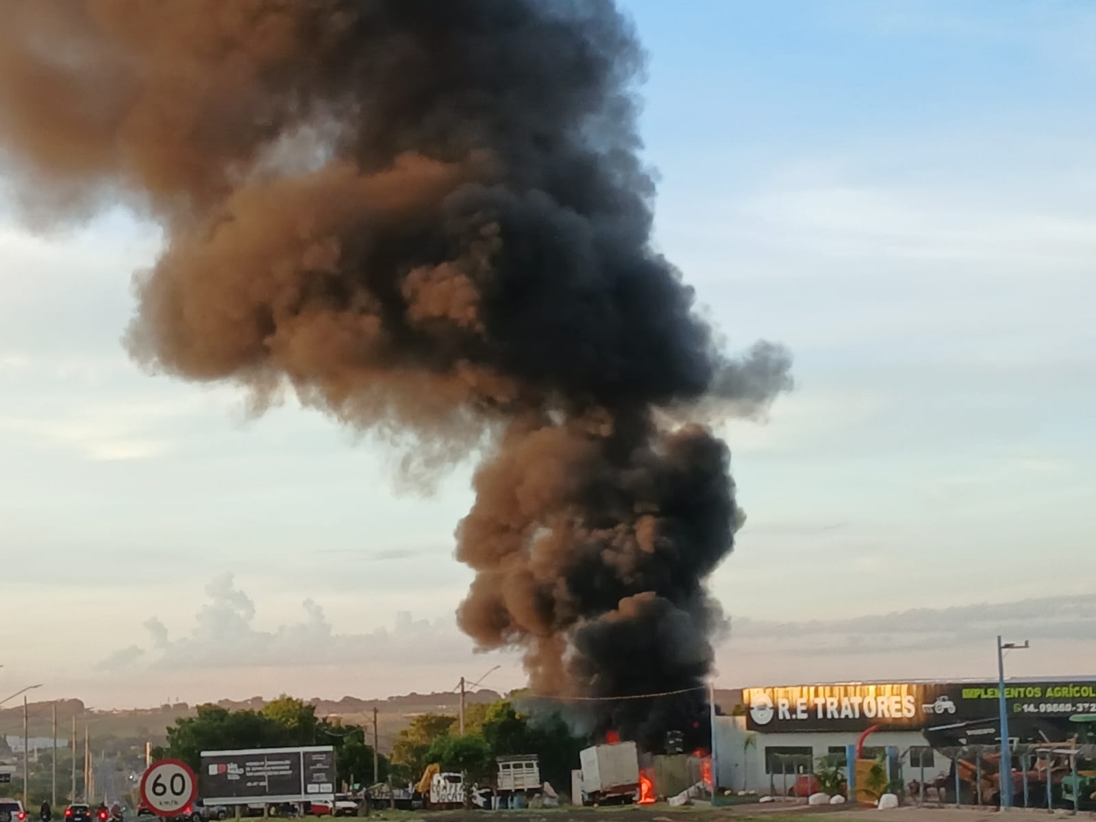 Um incêndio de grandes proporções chamou a atenção de moradores de Ourinhos no final da tarde deste sábado, 17, ao provocar uma intensa coluna de fumaça preta que pôde ser vista a longa distância. O fogo atingiu um depósito de reciclagem localizado às margens da Rodovia Raposo Tavares (SP), na região da Vila Brasil.