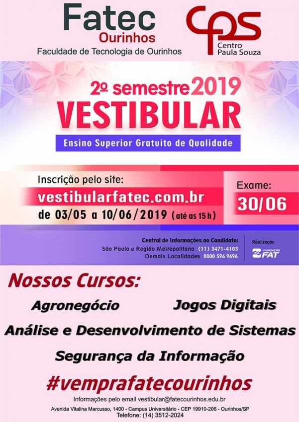 Qualquer dúvida, enviar email para vestibular@fatecourinhos.edu.br.