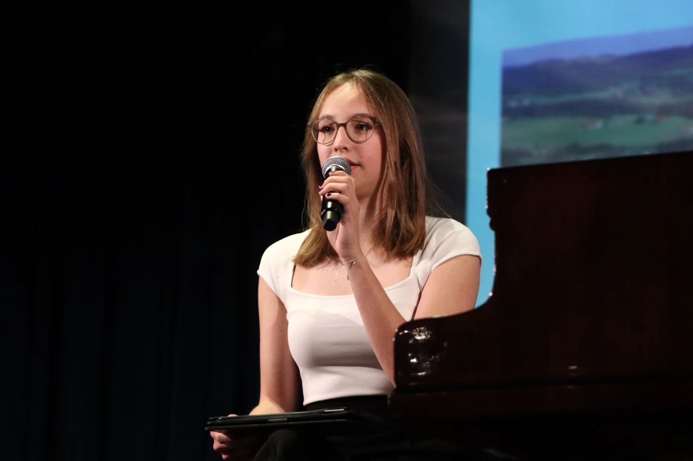 Antes do concerto, Hannah fez uma bela apresentação de sua vida na Alemanha, que teve como intérprete a estudante e intercambista Maria Paula Rossito Ribeiro, que vai participar do Programa de Intercâmbio de Curta Duração de Rotary Internacional. Maria Paula vai para a Alemanha em dezembro deste ano e ficará hospedada na residência de Hannah.