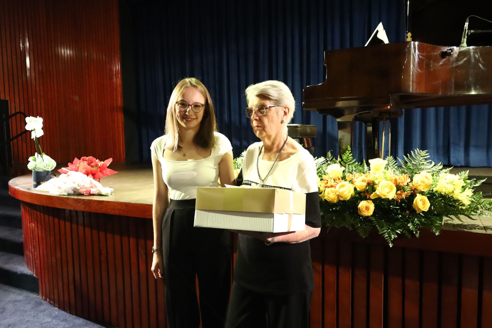Ao final da apresentação, Hannah recebeu presente da família anfitriã e flores da FEMM/UNIFIO e CSA.