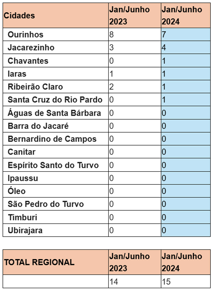 O aumento de 7% nos casos de interrupção em comparação com o mesmo período de 2023, quando foram registradas 14 ocorrências, reforça a necessidade de atenção e prevenção. As cidades de Ourinhos e Jacarezinho lideram o número de casos na região.
