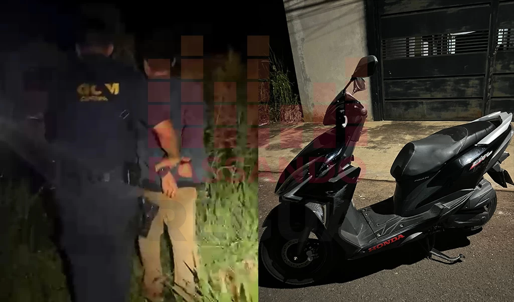De acordo com o boletim de ocorrência, os guardas realizavam patrulhamento nas proximidades do Terminal Rodoviário, na Vila Perino, quando, ao cruzarem a Rua Barão do Rio Branco, se depararam com os dois menores — identificados como K., de 16 anos, e K., de 14 — empurrando a motoneta pela via pública, sem capacetes. A moto estava identificada pela placa FYY-0933.