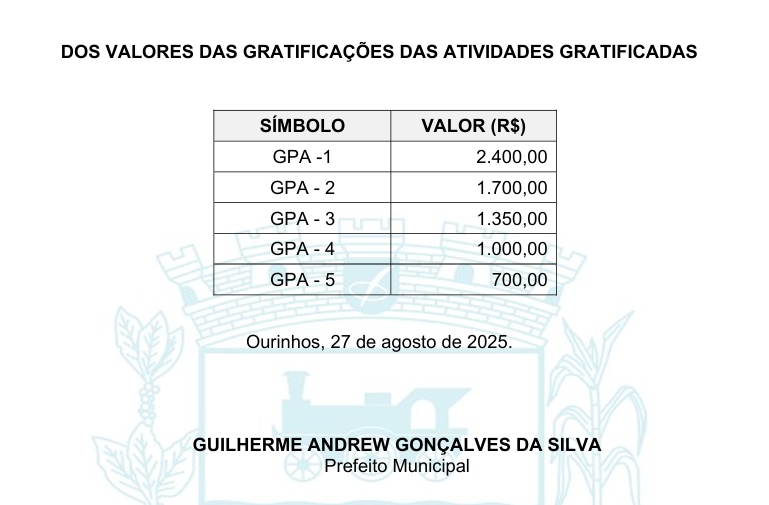 A proposta também cria as chamadas Atividades Gratificadas (GPA), que só poderão ser ocupadas por servidores concursados. Os valores variam de R$ 700,00 a R$ 2.400,00, além de uma gratificação específica de R$ 580,00 para servidores que integrarem comissões. Todos os comissionados deverão ter ensino superior completo.