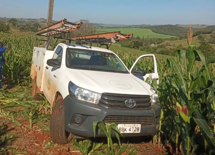 Na volta a coisa complicou de vez, o céu desabou de novo, e dá-lhe mais chuva, vento, trovões e relâmpagos... Num determinado trecho, um pequeno barranco deslizou para o meio da estrada, para desviar daquele monte de terra a roda dianteira esquerda acabou caindo dentro de um buraco. Tentei de tudo quanto foi jeito, liguei além da tração a reduzida... Fiquei um tempão pelejando, a camionete não saia do lugar, percebi que eu estava judiando do veículo!