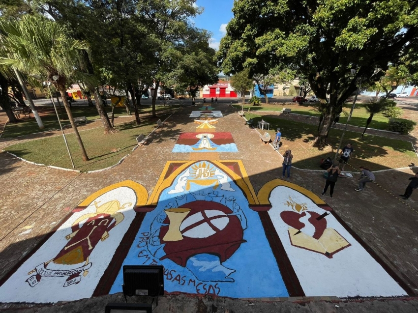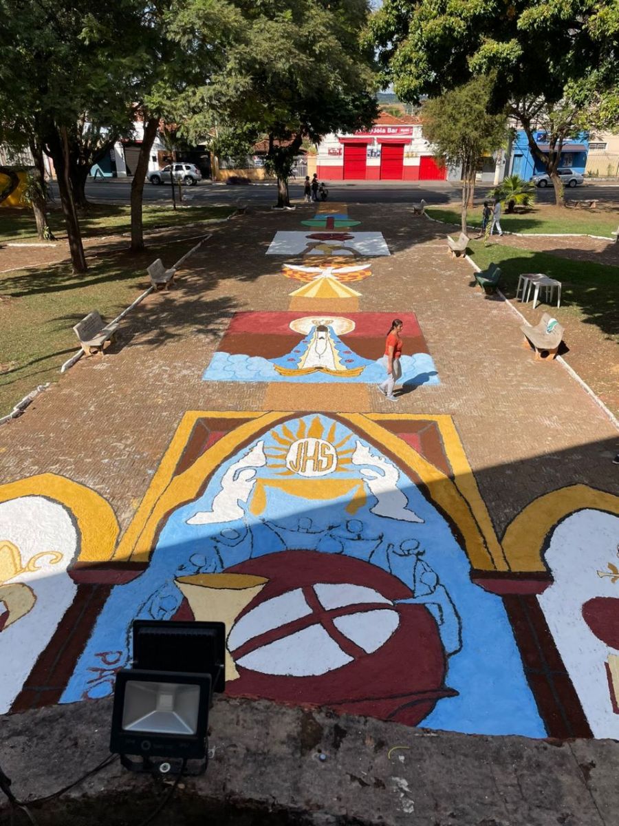 Imagem do tapete feito na Paróquia de Santo Antônio nesta quinta-feira, 8 (Foto: Passando a Régua)
