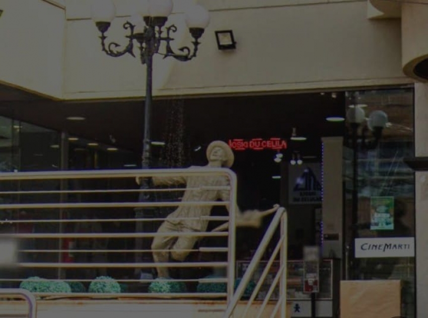 Na esquina, onde era o Pedutti, algumas últimas almas se retiravam do shopping do lugar, apenas Gene Kelly, permaneceu ali, eternizado na cena clássica de "Cantando na Chuva".