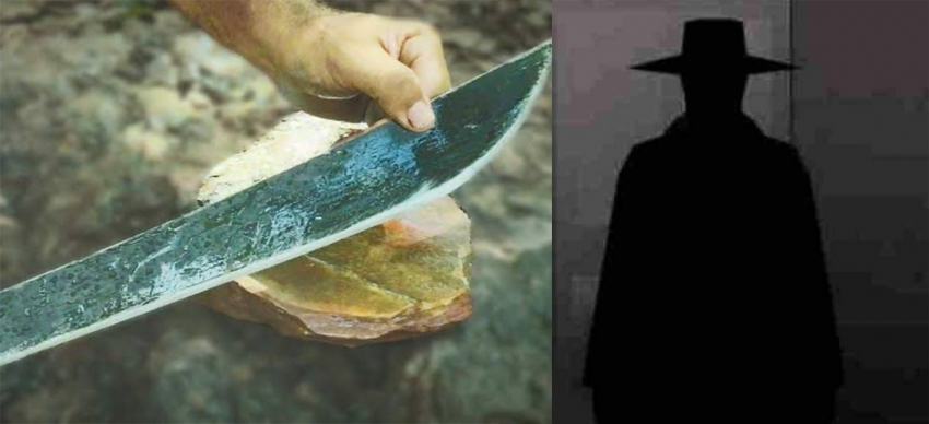 Corri lá na “despensinha”, no fundo de casa... Meu pai estava amolando um facão: