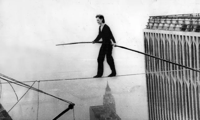 Já outro equilibrista, Phelippe Petit, no dia 7 de agosto de 1974, realizou a travessia de 42 metros entre os dois prédios do World Trade Center, coração da sempre movimentada Manhattan, em Nova York, nos EUA, a 400 metros de altura. O acontecimento entrou para a história.