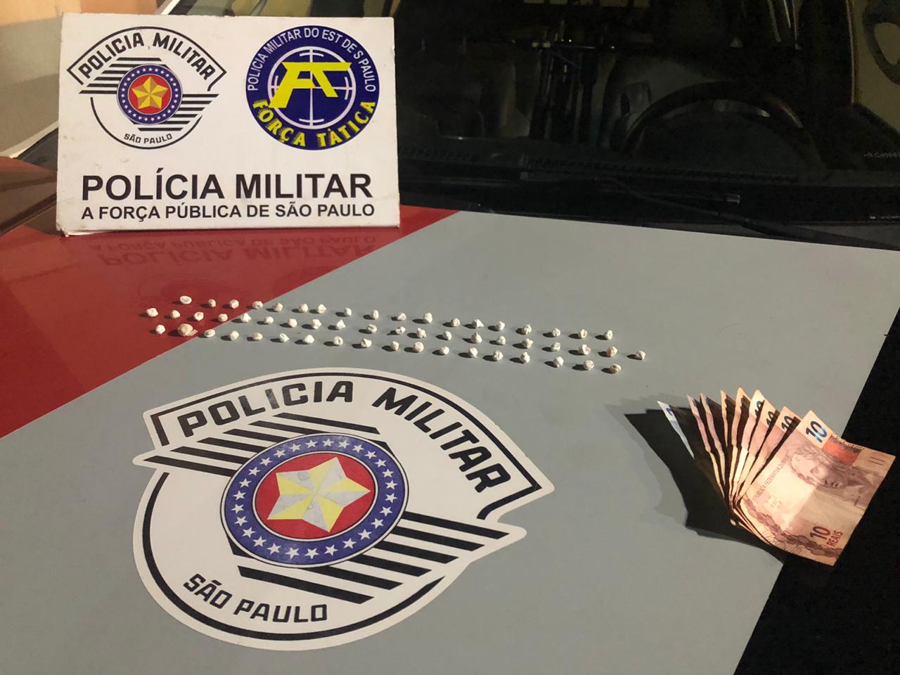 “Por volta das 19h, desta segunda-feira, 30, a equipe de Força Tática em patrulhamento pela rua Antônio Soares da Silva, no Vale Verde, em Ourinhos, ao se aproximar da praça existente defronte ao numeral 891 da referida rua, local este citado em diversas denúncias como sendo o utilizado por um casal para a venda de drogas, avistou o citado casal sentado em um dos bancos da praça, sendo que ao perceber a aproximação da viatura o rapaz jogou algo ao solo, fato que motivou a abordagem.