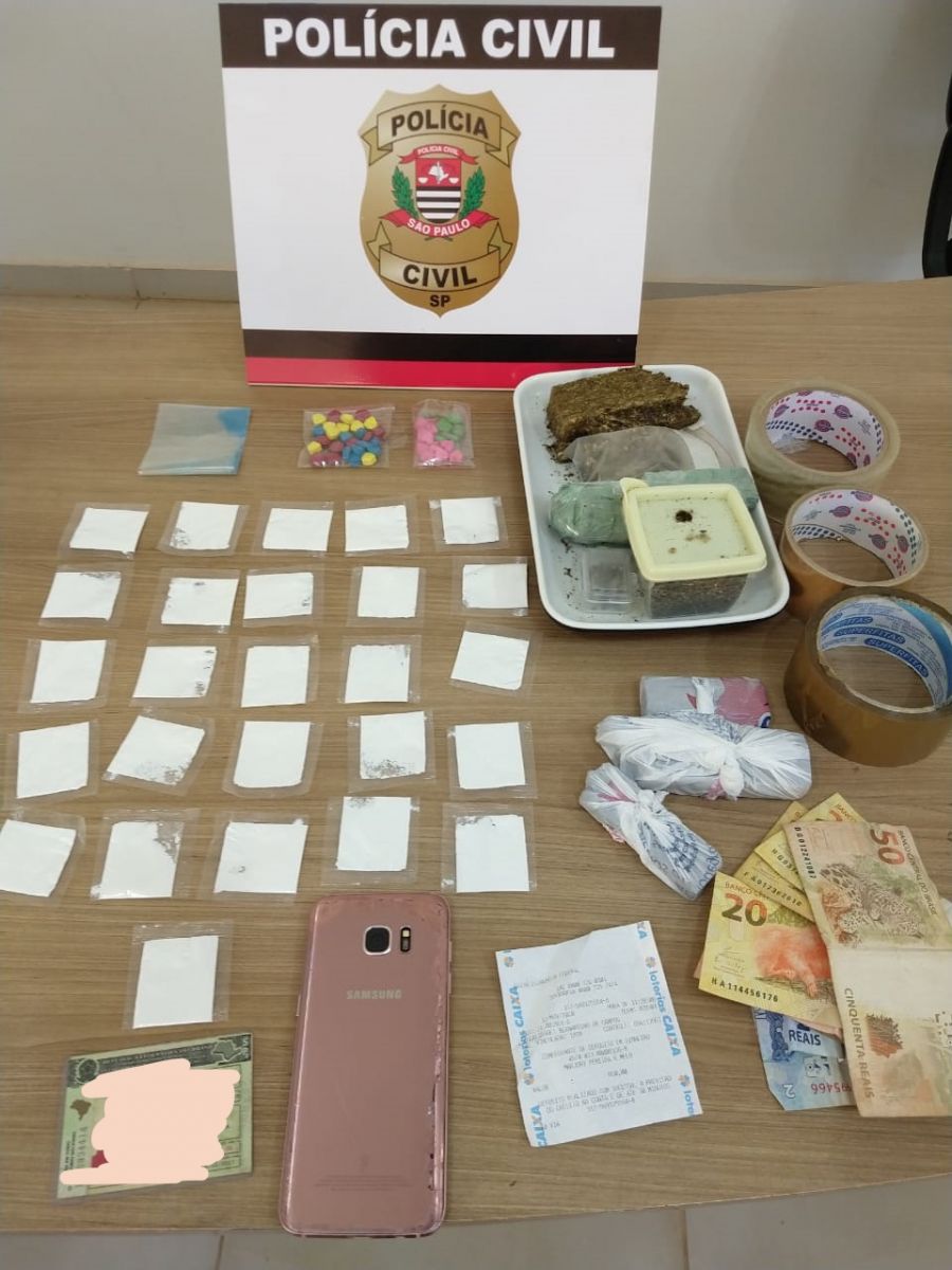 As investigadoras apreenderam ainda 3 rolos de fitas adesivas, um aparelho celular, R$ 129,00 e um comprovante de depósito bancário. As drogas pesaram: 254,4g de maconha, 125,93g na massa líquida de maconha, 21,41g na massa líquida de cocaína e 48 comprimidos de ecstase. A.J.S. de 21 anos foi levado para o plantão da polícia civil em Ourinhos, onde foi autuado em flagrante por tráfico de drogas e recolhido a cadeia pública de São Pedro do Turvo onde fica a disposição da justiça.