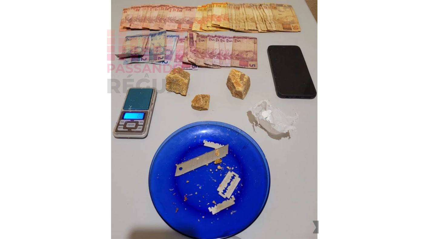 Os policiais revistaram o local onde Allan havia se abaixado e encontraram uma pedra de crack. Questionado, ele negou ter jogado o entorpecente no chão.