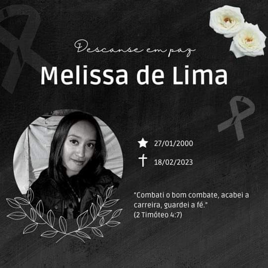 A jovem Melissa de Lima Cruz, de 23 anos, faleceu em Marília (90 km de Ourinhos). Melissa é residente na cidade de Canitar (município vizinho de Ourinhos). O seu corpo está sendo velado na Igreja Assembleia de Deus de Canitar e o seu sepultamento será às 10h30, no Cemitério Parque “Memorial Garden” de Ourinhos.