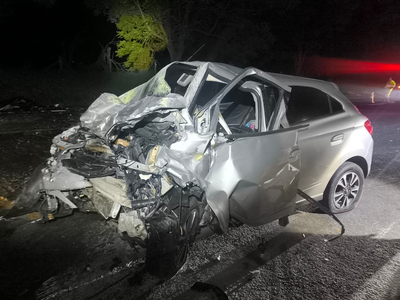 O motorista do outro veículo ficou preso às ferragens e foi socorrido em estado grave.